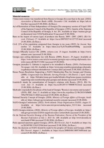 13. Путин выступил против санкций в отношении Грузии [Электронный ресурс] // РИА Новости. - 2019. - 9 июля. - Режим доступа : https://ria.ru/20190709/1556352584.html (дата обращения 25.08.2024).