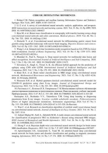 ПШЕНОКОВА И. А., КИЯСОВ М. Р. МОДЕЛИ И МЕТОДЫ ГЛУБОКОГО ОБУЧЕНИЯ В ЗАДАЧАХ РАСПОЗНАВАНИЯ И КЛАССИФИКАЦИИ МЕДИЦИНСКИХ ИЗОБРАЖЕНИЙ // ИЗВЕСТИЯ КАБАРДИНО-БАЛКАРСКОГО НАУЧНОГО ЦЕНТРА РАН. 2025. ТОМ 27 № 2