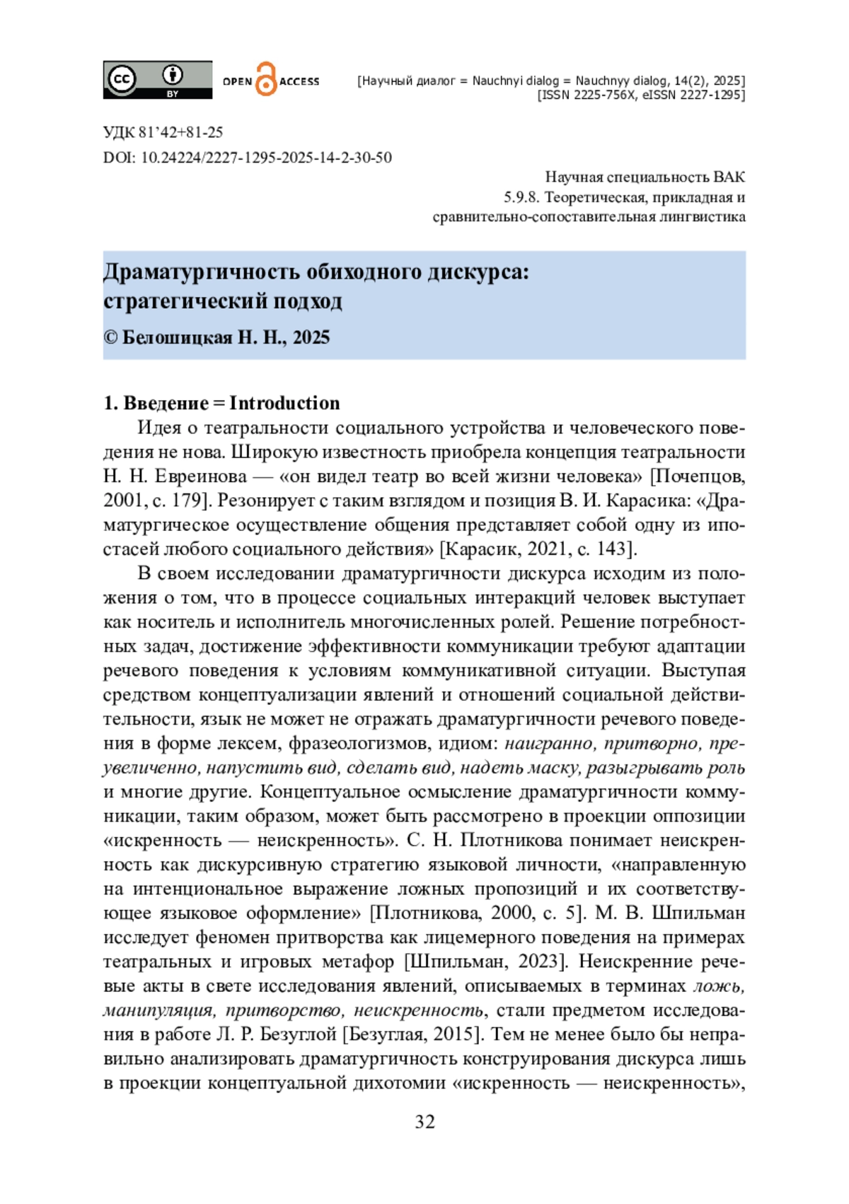 2. Белошицкая Н. Н. Драматургичность дискурса : когнитивно-прагматический потенциал метамаркера в ТАКОМ ТОНЕ / Н. Н. Белошицкая // Научный диалог. - 2024. - Т. 13. - № 2. - С. 35-52. - https://doi.org/10.24224/2227-1295-2024-13-2-35-52.