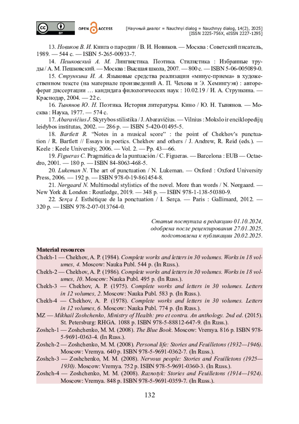 Статья: Пунктуационный минус-прием в условиях пародирования (на материале рассказов А. П. Чехова «Дама с собачкой» и М. М. Зощенко «Дама с цветами») (2025)