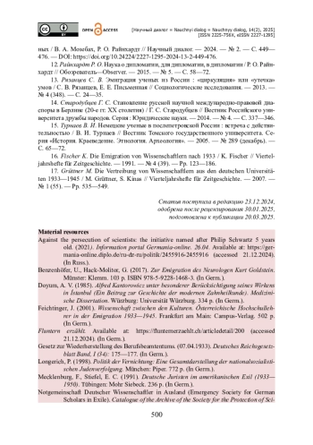 16. Fischer K. Die Emigration von Wissenschaftlern nach 1933 / K. Fischer // Vierteljahrshefte für Zeitgeschichte. - 1991. - № 4 (39). - Pp. 123-186.