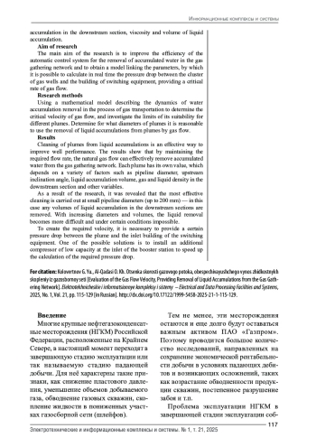 Статья: ОЦЕНКА СКОРОСТИ ГАЗОВОГО ПОТОКА, ОБЕСПЕЧИВАЮЩЕГО ВЫНОС ЖИДКОСТНЫХ СКОПЛЕНИЙ ИЗ ГАЗОСБОРНОЙ СЕТИ (2025)