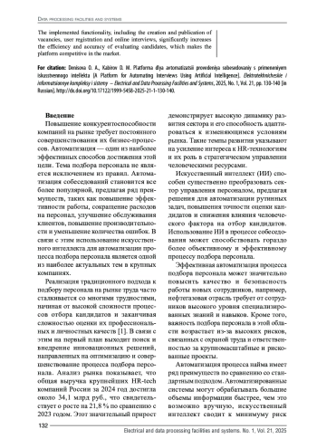 Статья: ПЛАТФОРМА ДЛЯ АВТОМАТИЗАЦИИ ПРОВЕДЕНИЯ СОБЕСЕДОВАНИЙ С ПРИМЕНЕНИЕМ ИСКУССТВЕННОГО ИНТЕЛЛЕКТА (2025)