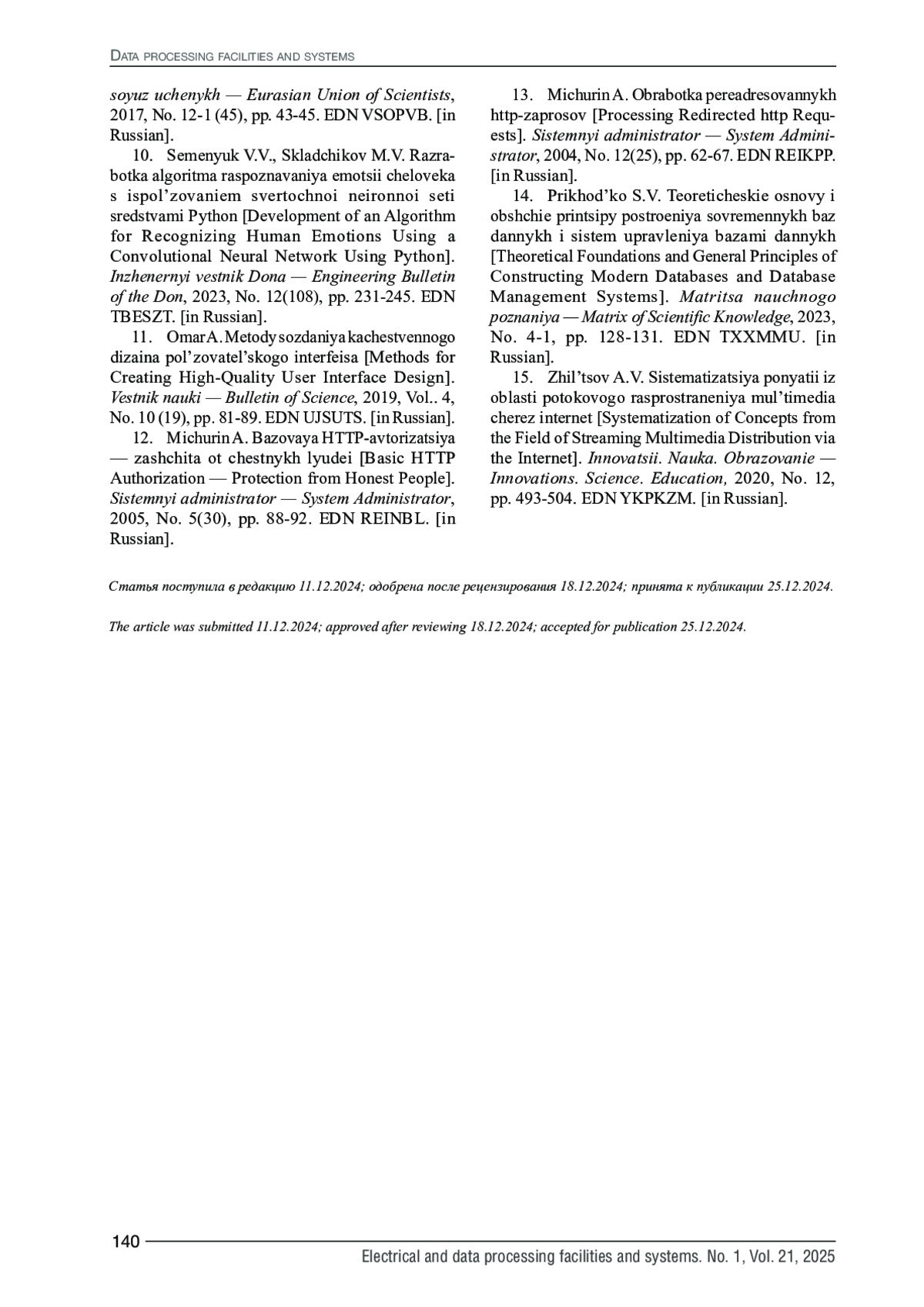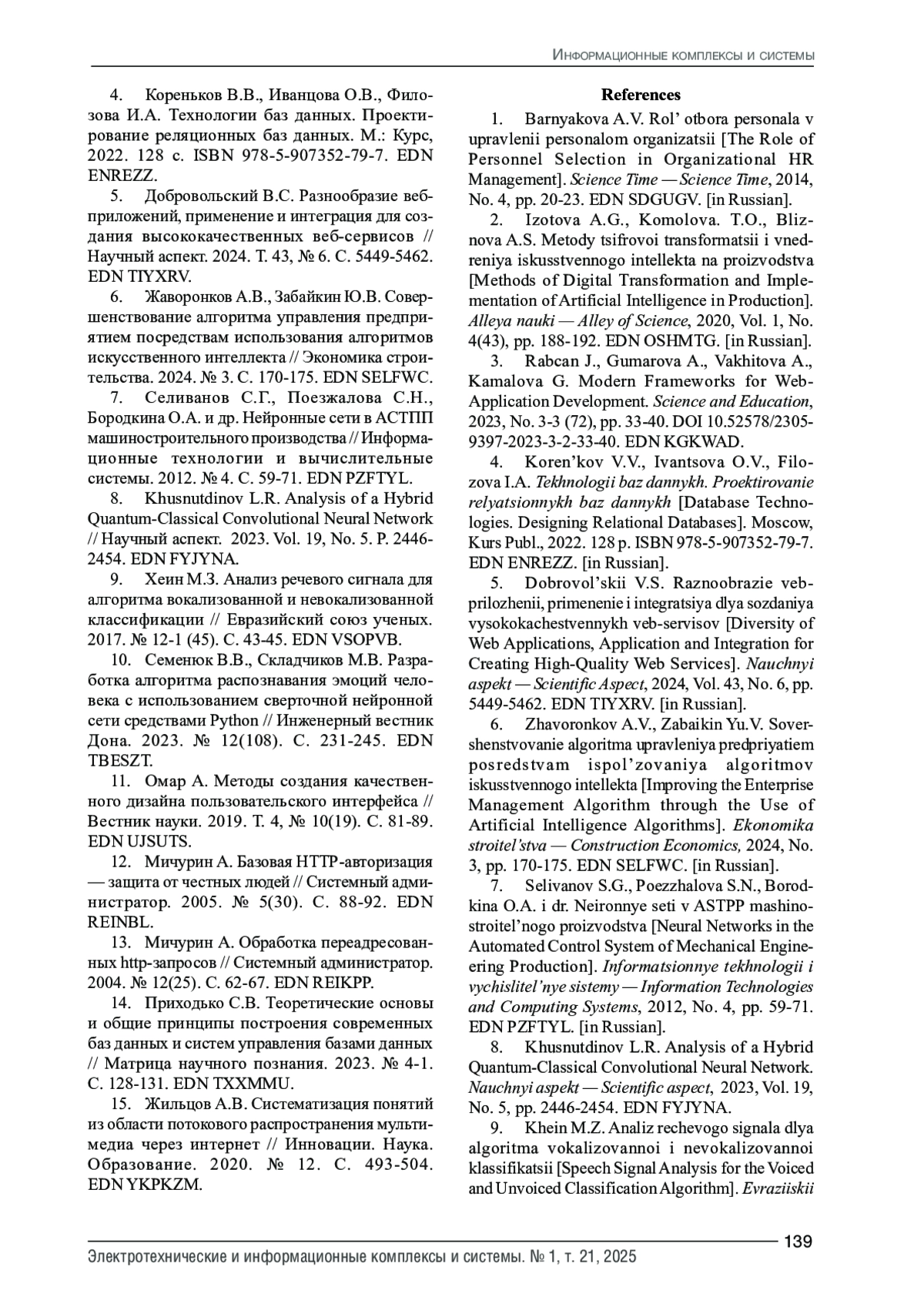 Журнал: ЭЛЕКТРОТЕХНИЧЕСКИЕ И ИНФОРМАЦИОННЫЕ КОМПЛЕКСЫ И СИСТЕМЫ