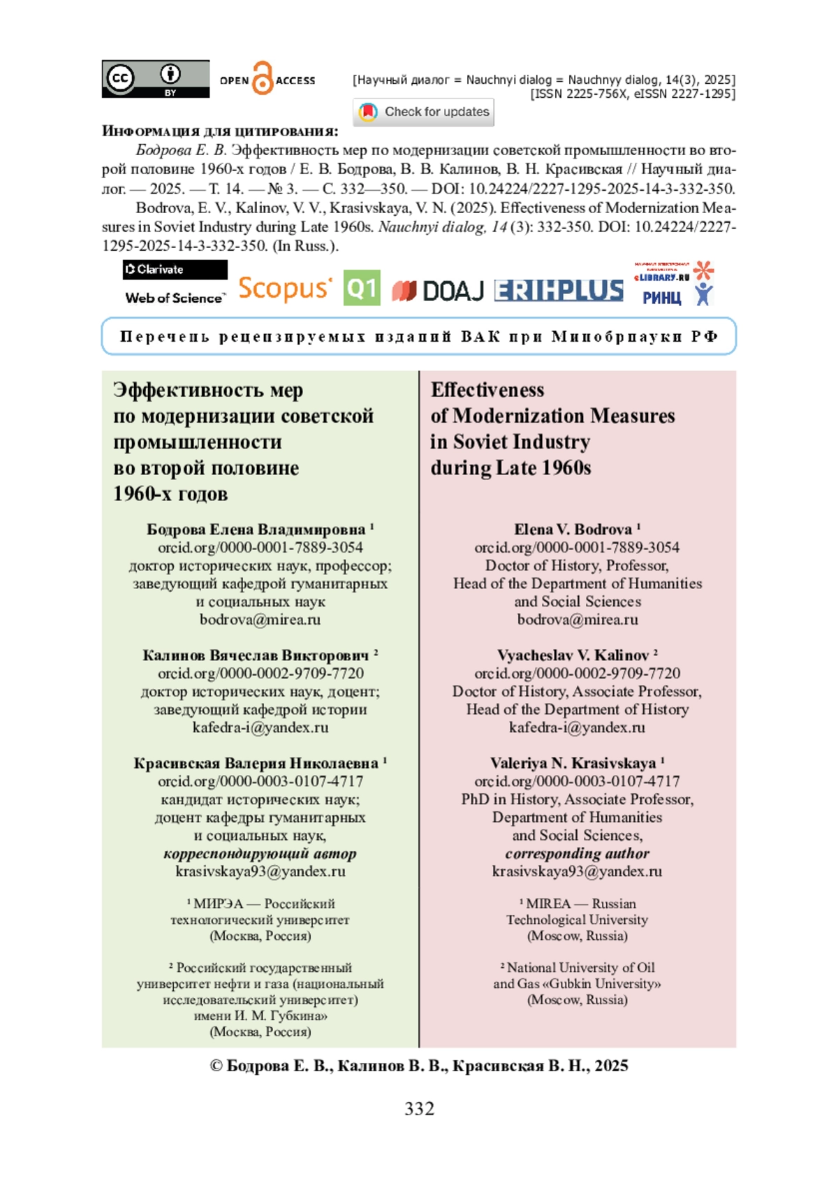 4. Бодрова Е. В. Государственная научно-техническая политика СССР в условиях холодной войны и развертывания научно-технической революции (1950-е - первая половина 1960-х годов) / Е. В. Бодрова, В. В. Калинов. - Москва : Дашков и Ко, 2023. - 452 с. - ISBN 978-5-394-05829-5.