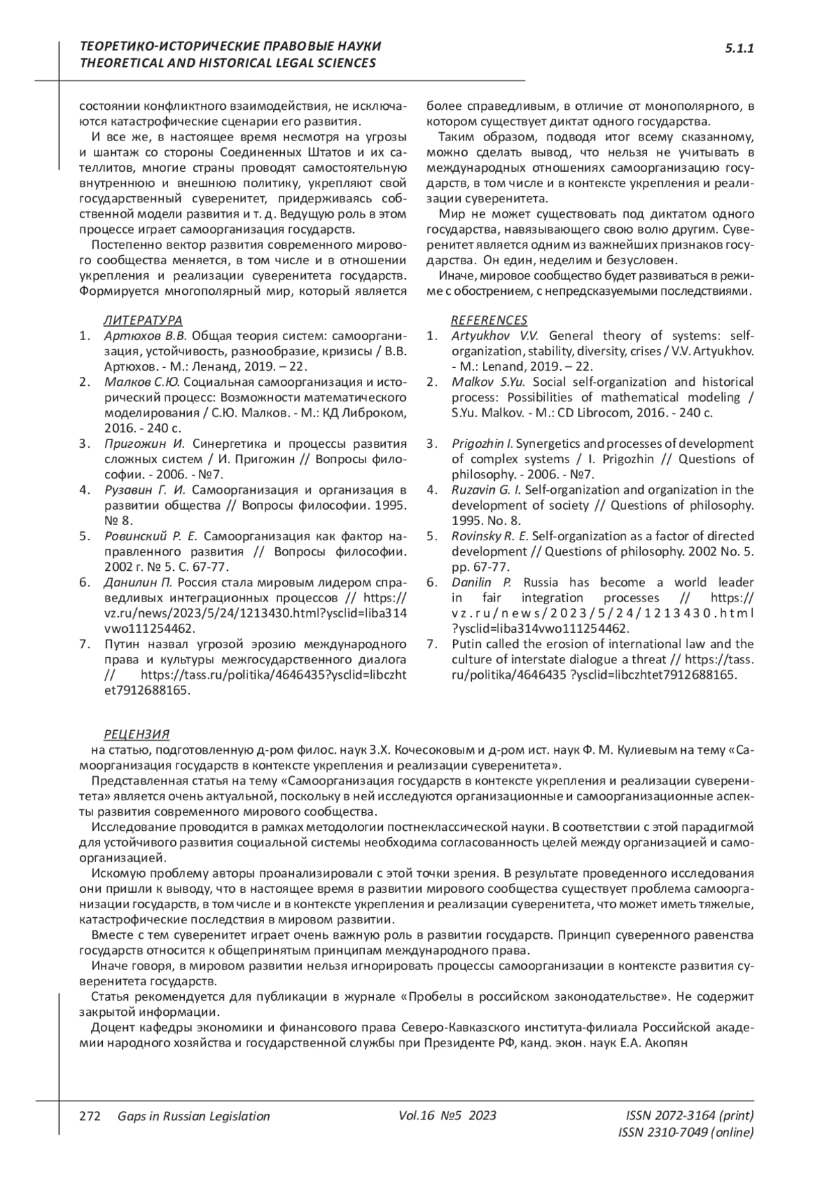 4. Рузавин Г. И. Самоорганизация и организация в развитии общества // Вопросы философии. 1995. № 8.