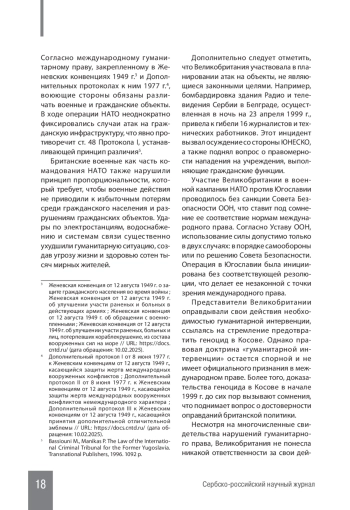 В статье анализируются военные преступления Великобритании против Сербии с исторической и правовой точек зрения. Рассматривается период с Первой мировой войны до современных конфликтов на Балканах. Оцениваются действия британских военных и политиков в контексте международного права, включая Женевские конвенции и нормы гуманитарного права. Выделены ключевые эпизоды: бомбардировки Сербии в 1999 г. в составе сил НАТО, участие в разработке стратегий давления на сербскую сторону в ходе югославского конфликта, а также последствия этих действий для международных отношений. Основное внимание уделяется анализу правовой ответственности и механизмов предотвращения подобных преступлений.