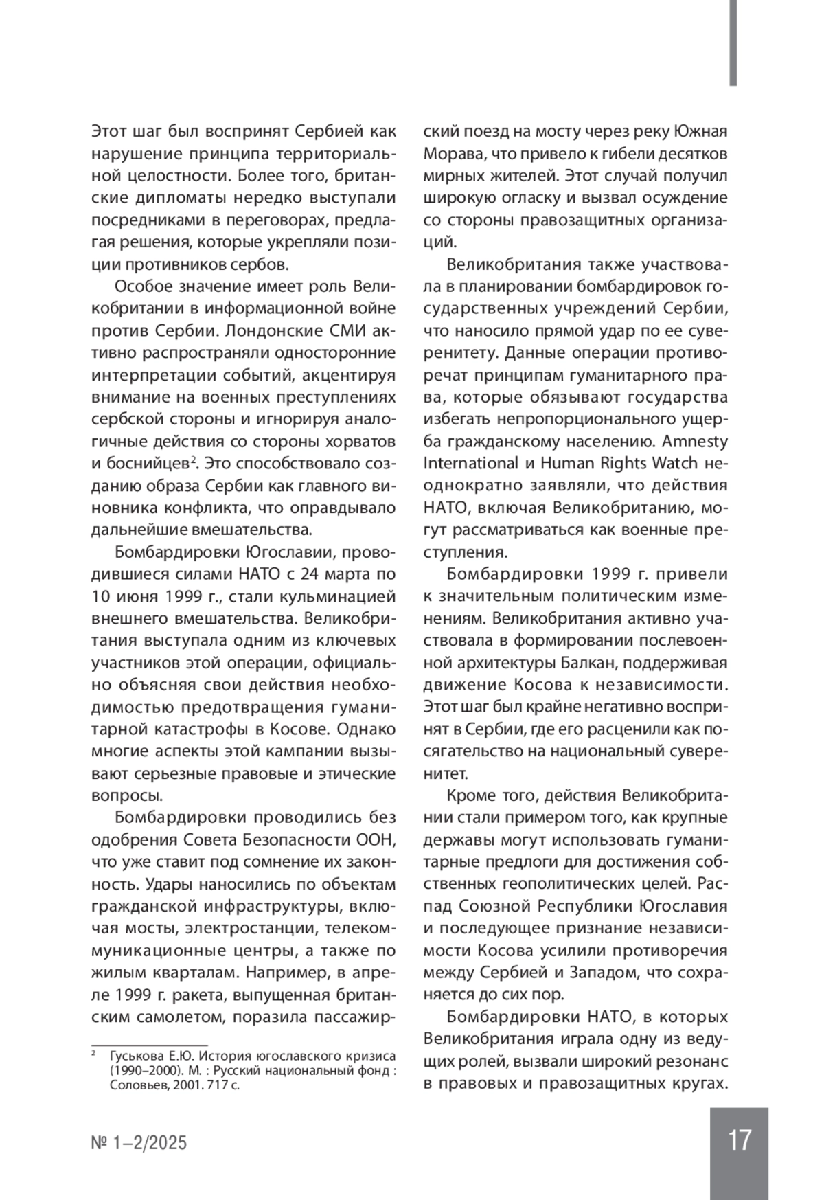 Военные преступления являются одной из наиболее болезненных тем в истории международных конфликтов. Историко-правовой анализ действий Великобритании в отношении Сербии позволяет раскрыть роль внешних акторов в дестабилизации Балканского региона и оценить соответствие их действий нормам международного права. Особое внимание уделяется периоду конфликта в бывшей Югославии и бомбардировкам 1999 г.