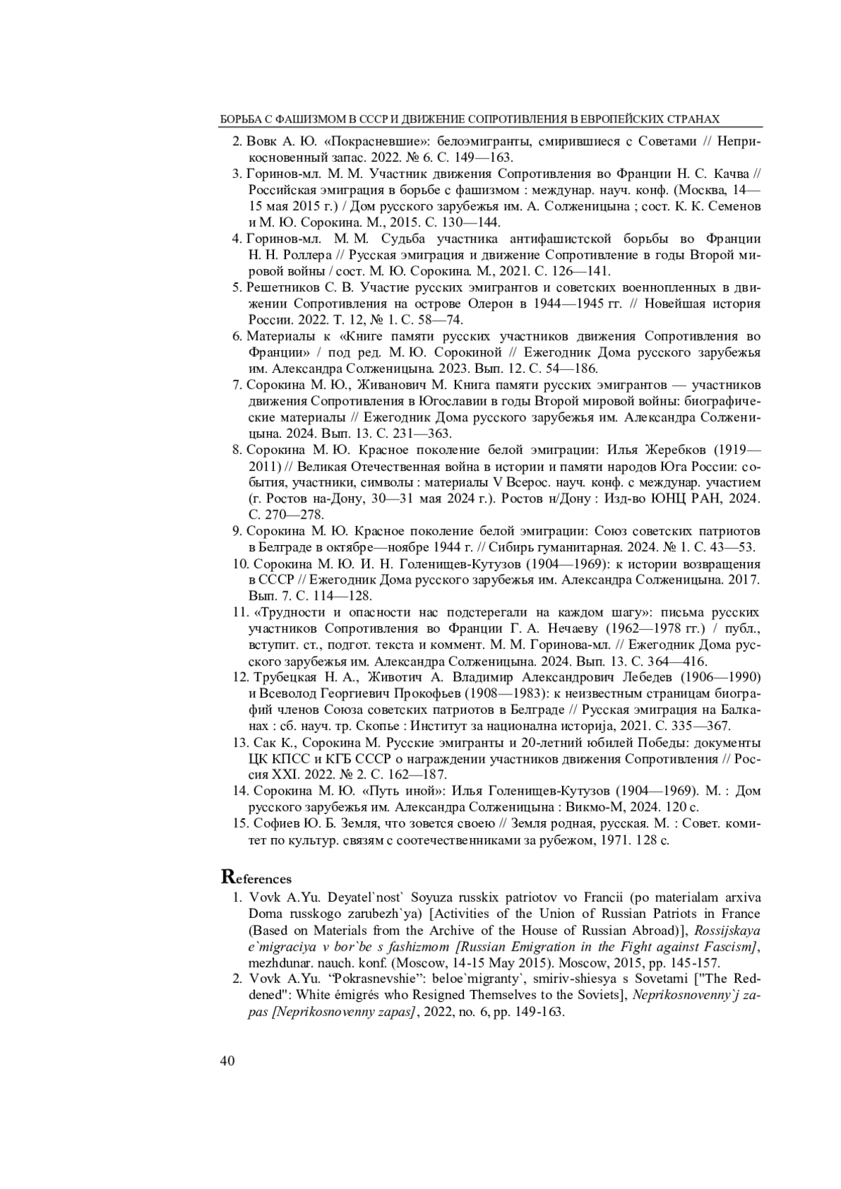 СОРОКИНА М. Ю. ВОЗВРАЩЕНИЕ НА РОДИНУ: ЖИЗНЬ В СССР УЧАСТНИКОВ ДВИЖЕНИЯ СОПРОТИВЛЕНИЯ И. Н. ГОЛЕНИЩЕВА-КУТУЗОВА И Ю. Б. БЕК-СОФИЕВА // СИБИРЬ ГУМАНИТАРНАЯ. 2025. № 2 (10)
