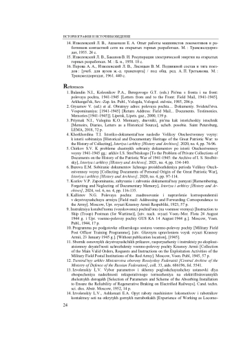 4. Хорхордина Т. И. Историко-документальное наследие Великой Отечественной войны: к истории собирания // История и архивы. 2020. № 4. С. 76-96.