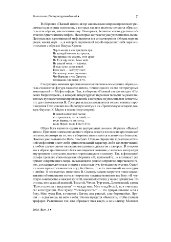 Статья: ЛИТЕРАТУРНЫЕ И МИФОЛОГИЧЕСКИЕ ИСТОЧНИКИ ПОЭТИЧЕСКИХ ТЕКСТОВ СБОРНИКА В. СОСНОРЫ «ПЬЯНЫЙ АНГЕЛ» (2025)