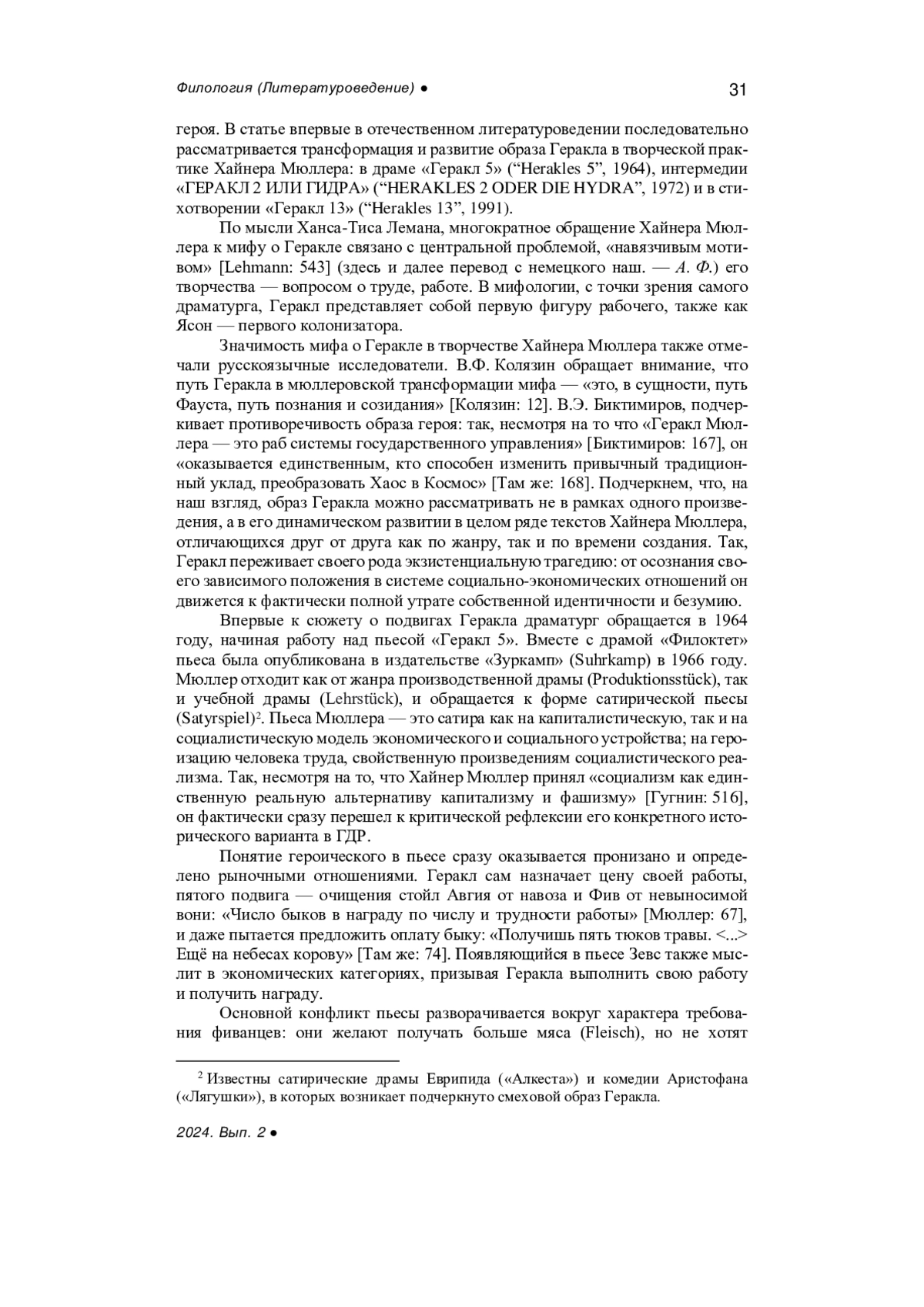 3. Биктимиров В.Э. Особенности интерпретации античного мифа о Геракле в драмах Х. Мюллера и П. Хакса // Национальные коды европейской литературы в диахроническом аспекте: античность - современность: коллективная монография / отв. ред. Т.А. Шарыпина, И.К. Полуяхтова, М.К. Меньщикова. Нижний Новгород: Деком, 2018. С. 164-175. EDN: NSLXEF
