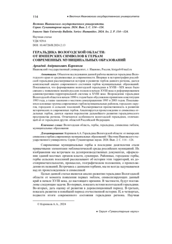 Объектом исследования данной работы является геральдика Вологодского края от средневековья до современности. Впервые в историографии российской геральдики рассматривается история и развитие гербов данного региона, дается комплексный анализ современного состояния гербов муниципальных образований. Показывается, что формирование вологодской геральдики в XVIII—XIX веках было связано с появлением знамён русских полков в начале XVIII века и реформированием административно-территориальной системы в XVIII веке. Возрождение геральдики Вологодской области в начале 1990-х годов было обусловлено принятием конституции 1993 года, а также законами о местном самоуправлении 1995 и 2003 годов. Показываются основные группы современных гербов муниципальных районов, городских округов, городских и сельских поселений. Рассматривается преемственность в развитии исторических и современных гербов. Анализируется происхождение и символика отдельных гербов, даются оценки перспектив дальнейшего развития геральдического пространства региона. Отмечаются особенности вологодской геральдики, отличающей её от геральдики других областей Российской Федерации