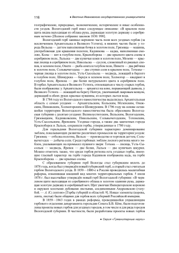 (Sviridenko O. Problems of modern heraldry of Vologda region, Herboved, 2005, no. 84, pp. 148-153. - In Russ.