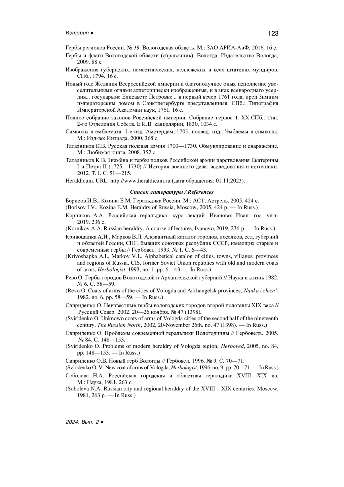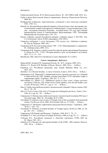 18. Свириденко О. Проблемы современной геральдики Вологодчины // Гербоведъ. 2005. № 84. С. 148-153.