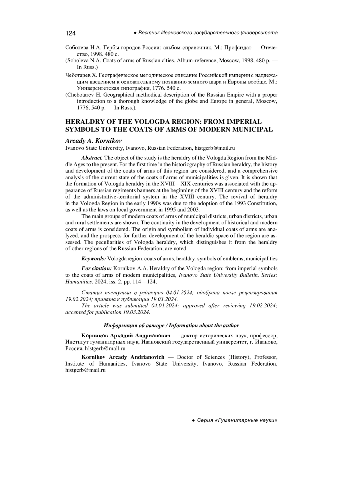 14. Корников А.А. Российская геральдика: курс лекций. Иваново: Иван. гос. ун-т, 2019. 236 с. EDN: YOLVLG