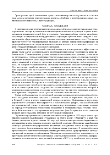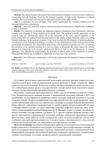 Статья: РАЗВИТИЕ ПРОФЕССИОНАЛЬНОГО ПОТЕНЦИАЛА ГОСУДАРСТВЕННЫХ СЛУЖАЩИХ В УСЛОВИЯХ ПРЕОДОЛЕНИЯ ВНЕШНИХ ВЫЗОВОВ (2025)