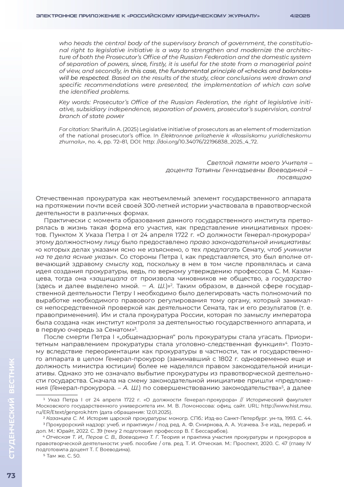 17. Шобухин В. Ю. К вопросу о праве законодательной инициативы прокурора // Вестник Омского университета. Сер.: Право. 2009. № 4. С. 230-232.