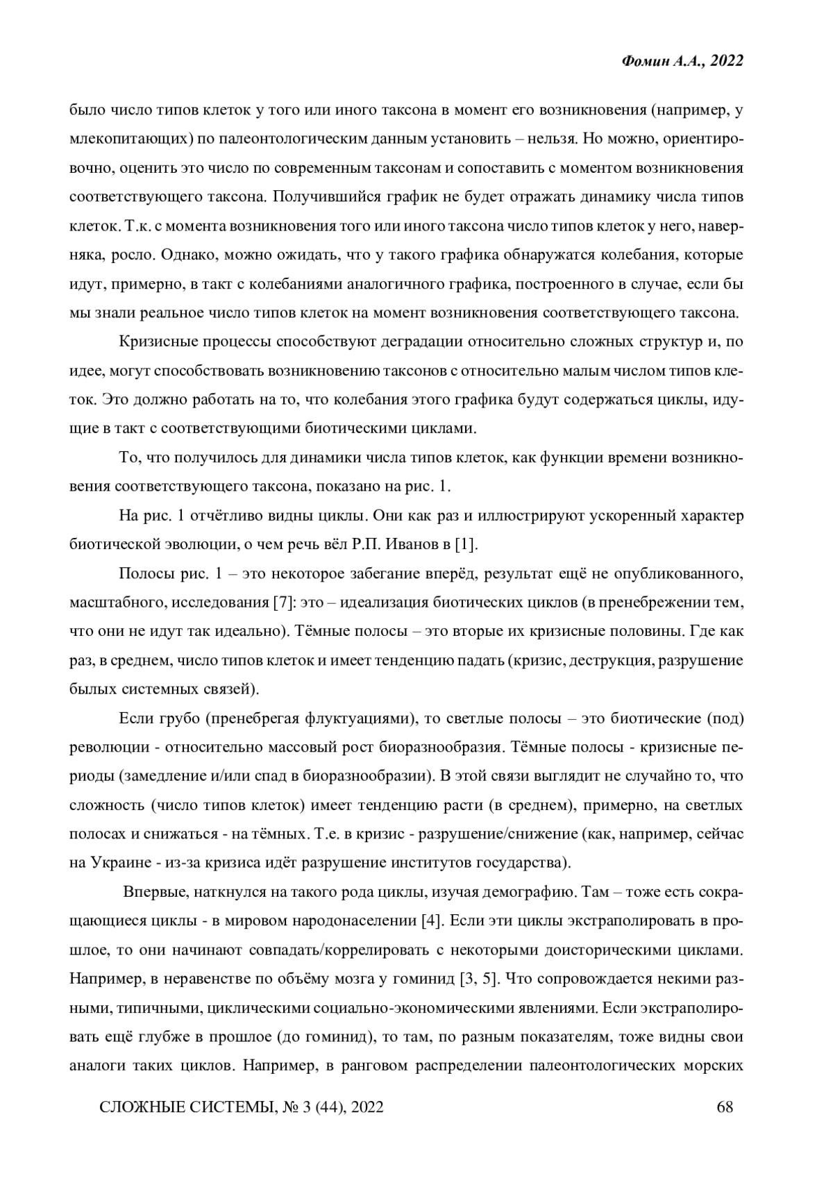 6. Фомин А. А. 2022. Ранговое распределение палеонтологических морских родов и протодемографические циклы. Альманах “Эволюция”. Отв. ред. Гринин Л. Е., Коротаев А. В., Волгоград: Учитель.