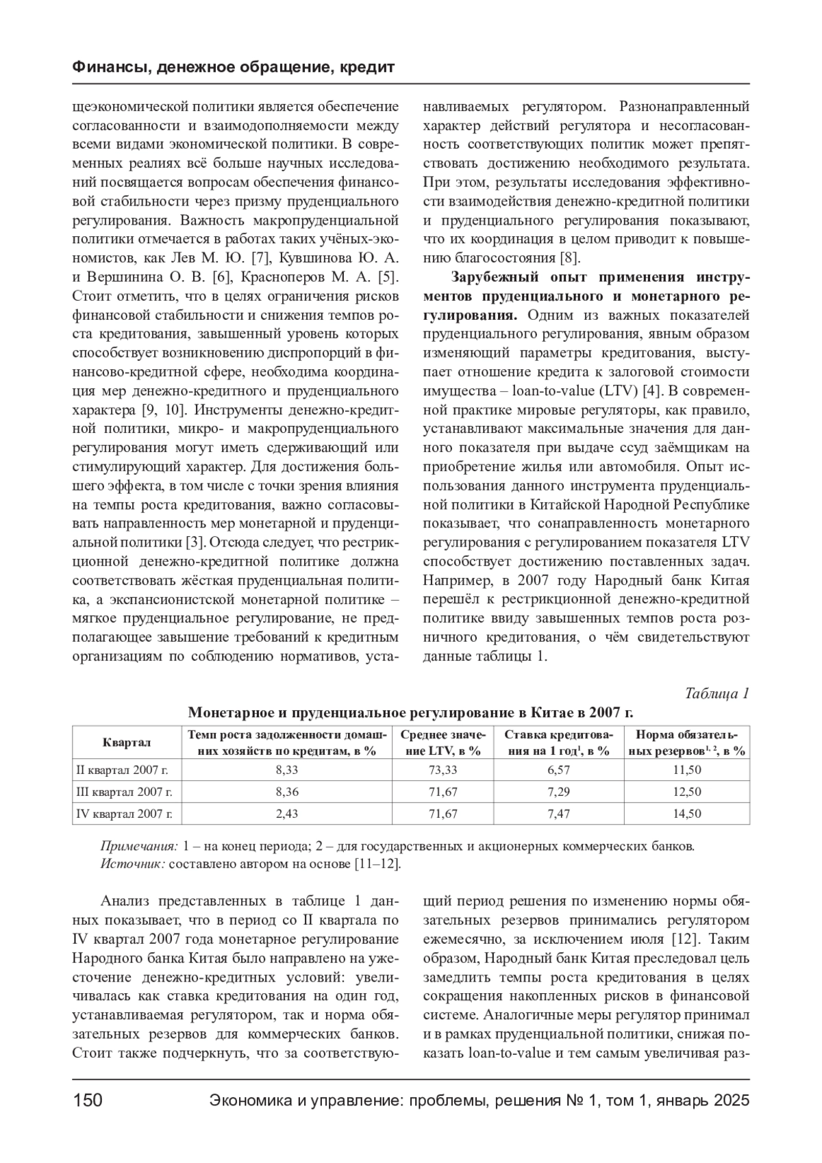 6. Кувшинова Ю. А., Вершинина О. В. Роль макропруденциальной политики Банка России в повышении устойчивости финансовых институтов // Инновационное развитие экономики. 2024. № 1 (79). С. 138-145. EDN: ZKICIN