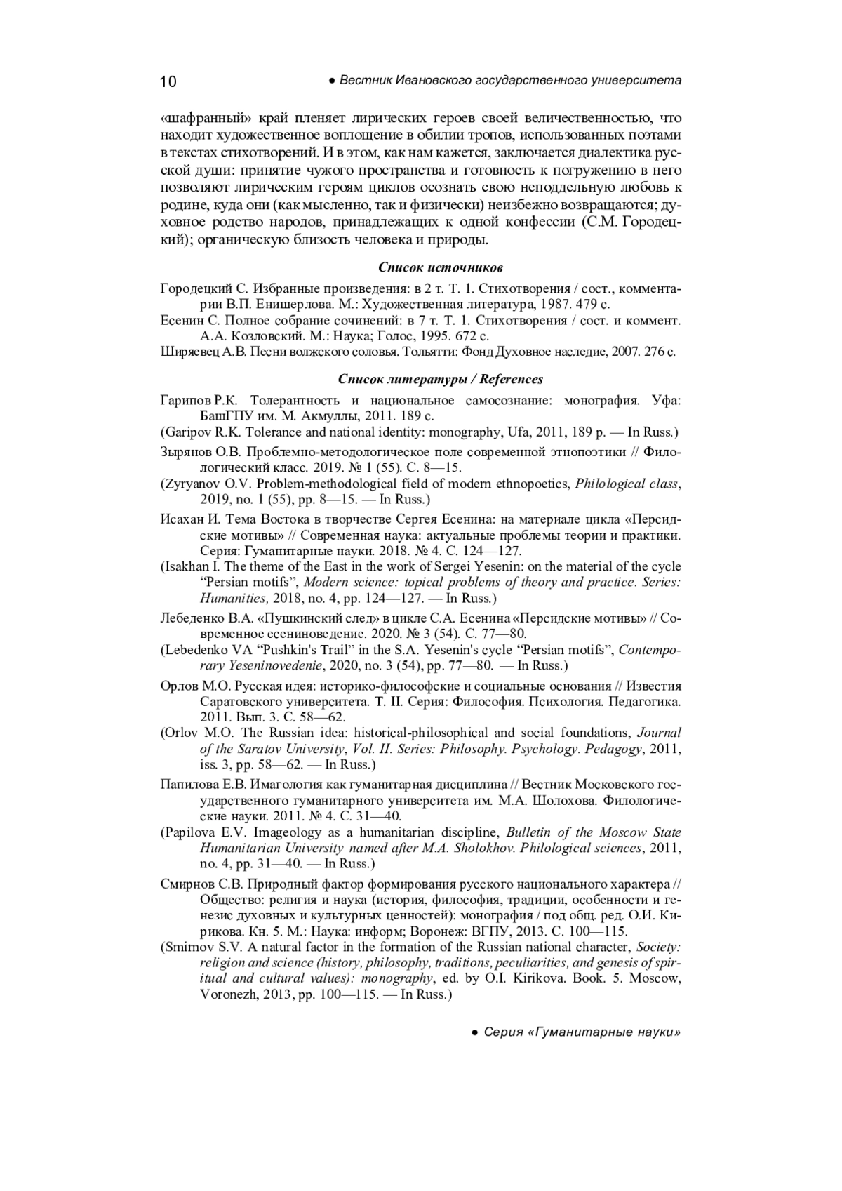 Статья: РЕЦЕПЦИЯ "ЧУЖОГО ПРОСТРАНСТВА" В ЦИКЛАХ С. А. ЕСЕНИНА "ПЕРСИДСКИЕ МОТИВЫ", А. В. ШИРЯЕВЦА "БИРЮЗОВАЯ ЧАЙХАНА", С. М. ГОРОДЕЦКОГО "АНГЕЛ АРМЕНИИ" (2024)