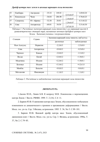 БАРКИН Ю. В. ДРЕЙФ ЦЕНТРА МАСС ЗЕМЛИ И ВЕКОВЫЕ ВАРИАЦИИ СИЛЫ ТЯЖЕСТИ // СЛОЖНЫЕ СИСТЕМЫ. 2023. № 2 (47)