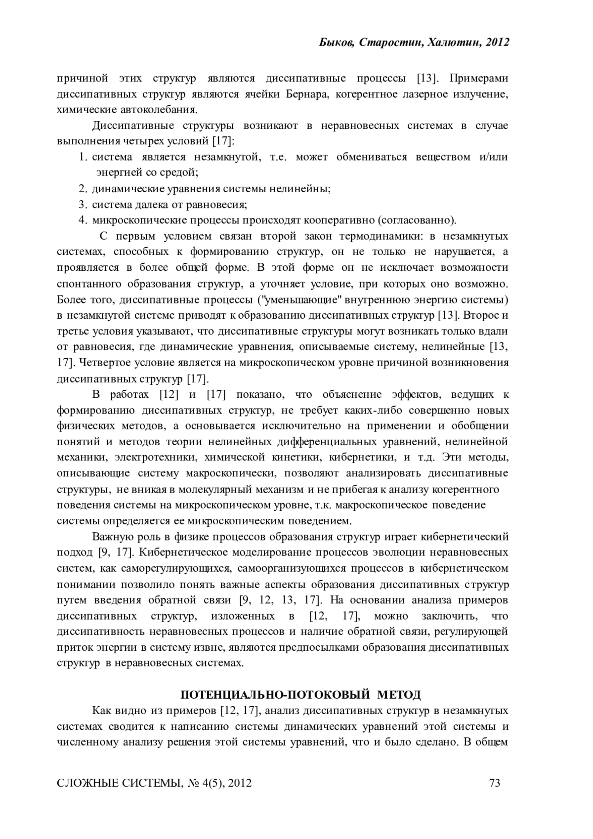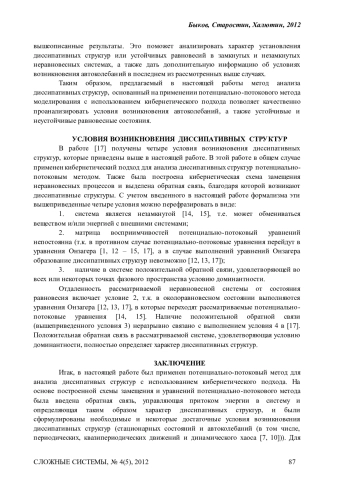 Статья: АНАЛИЗ ФОРМИРОВАНИЯ ДИССИПАТИВНЫХ СТРУКТУР В СЛОЖНЫХ СОСРЕДОТОЧЕННЫХ СИСТЕМАХ НА ОСНОВЕ ПОТЕНЦИАЛЬНОПОТОКОВОГО МЕТОДА. КИБЕРНЕТИЧЕСКИЙ ПОДХОД (2012)