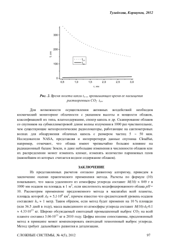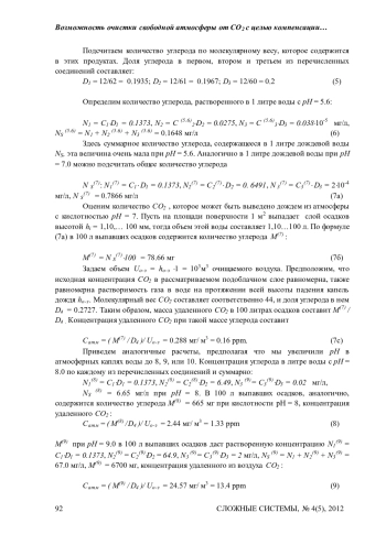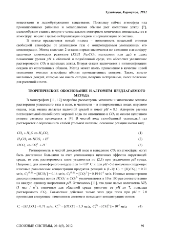 Предложен метод очистки отдельных участков свободной атмосферы от избытка СО 2, искусственно повышая до необходимого уровень pH в облаках с последующей интенсификацией осадков из естественных облаков с целью осаждать из атмосферы расчетное количество углерода. Предложенный метод, при применении на 10% поверхности Земли, способен компенсировать ежегодный промышленный выброс СО2. Метод требует детализации и развития, для проведения активных воздействий на облака, необходим их космический мониторинг с указанием параметров
