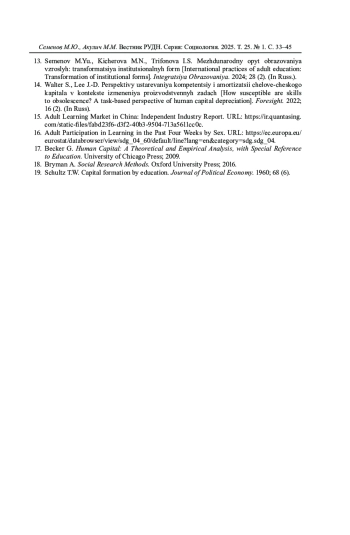 13. Семенов М.Ю., Кичерова М.Н., Трифонова И.С. Международный опыт образования взрослых: трансформация институциональных форм // Интеграция образования. 2024. Т. 28. № 2. EDN: NDGJGM