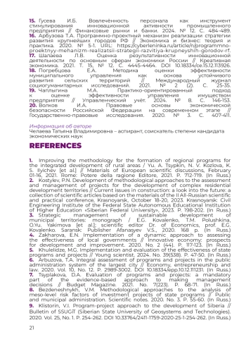 26. Arbuzova, T.A.Integral assessment of programs and projects in the public administration system of the largest city // Economy, entrepreneurship and law. 2020. Vol. 10, No. 12. P. 2989-3002. (In Russ.). DOI: 10.18334/epp.10.12.111231 EDN: WYTWKX