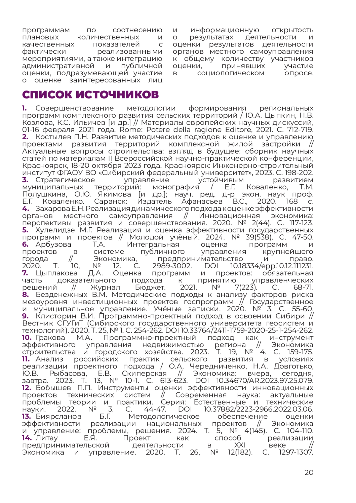 27. Tsyplakova, D.A. Evaluation of programs and projects: a mandatory part of the evidence-based approach to making management decisions // Budget Magazine. 2021. No. 7(223). P. 68-71. (In Russ.).