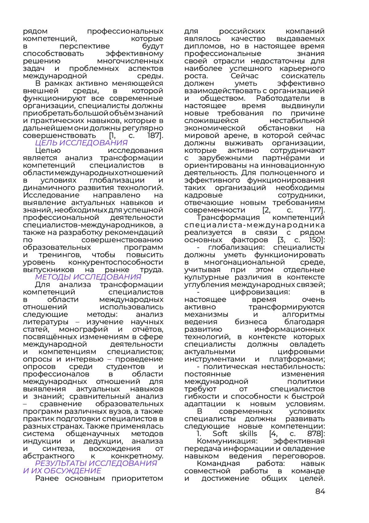 Статья: ТРАНСФОРМАЦИЯ КОМПЕТЕНЦИЙ СПЕЦИАЛИСТА-МЕЖДУНАРОДНИКА В СОВРЕМЕННЫХ УСЛОВИЯХ (2025)