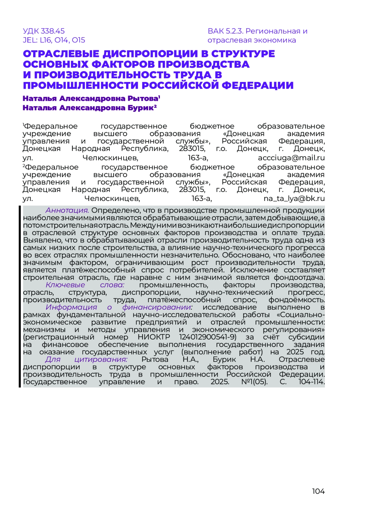 5. Беленцов В.Н., Рытова Н.А., Бурик Н.А. Закономерности и факторы отраслевого развития экономики с разным уровнем дохода // Глобальный научный потенциал. 2025. № 3(168). С. 215-220.