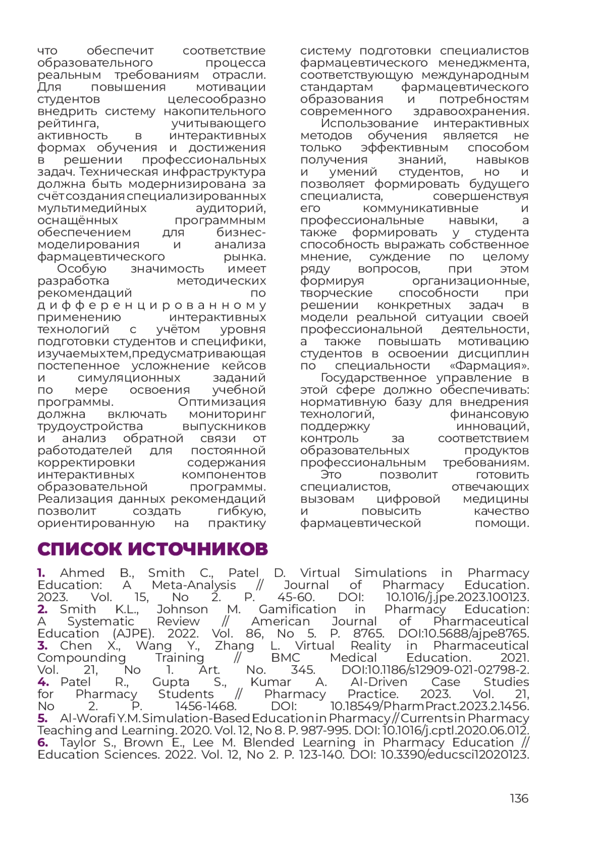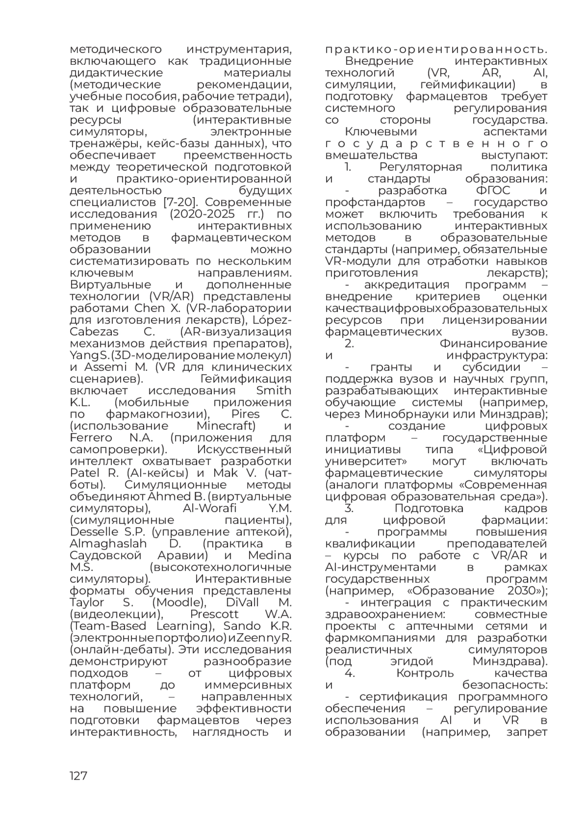 Статья: ПРИМЕНЕНИЕ ИНТЕРАКТИВНЫХ МЕТОДОВ ПРИ ПОДГОТОВКЕ СПЕЦИАЛИСТОВ В ОБЛАСТИ ФАРМАЦИИ (НА ПРИМЕРЕ ПРЕПОДАВАНИЯ ДИСЦИПЛИНЫ «МЕНЕДЖМЕНТ В ФАРМАЦИИ») (2025)