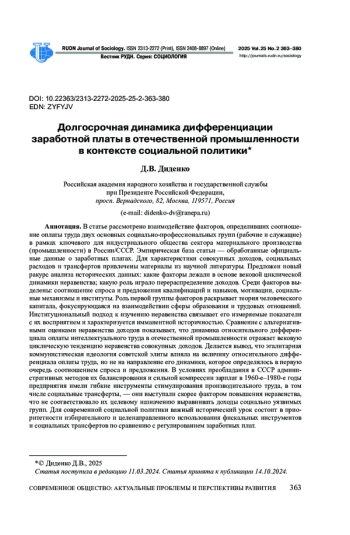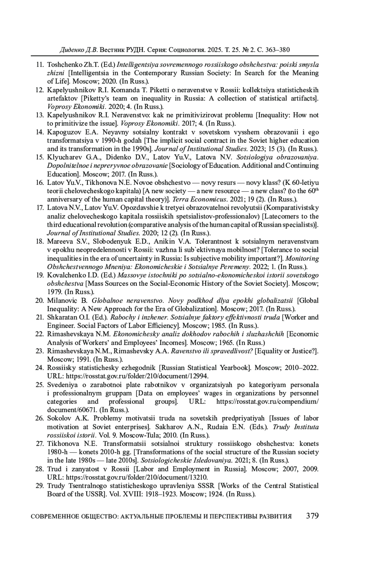 10. Диденко Д.В. Неравенство доходов в современной России на фоне долгосрочной исторической ретроспективы // Terra Economicus. 2022. Т. 20. № 2. EDN: EAIEDY