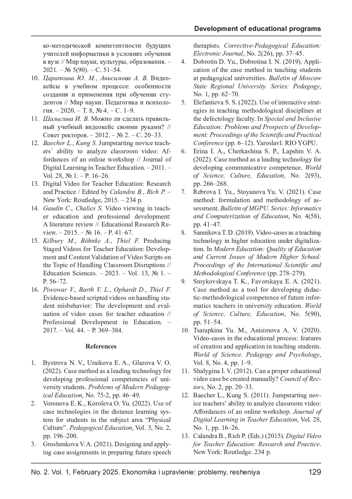 10. Царапкина Ю. М., Анисимова А. В. Видеокейсы в учебном процессе: особенности создания и применения при обучении студентов // Мир науки. Педагогика и психология. - 2020. - Т. 8, № 4. - С. 1-9.