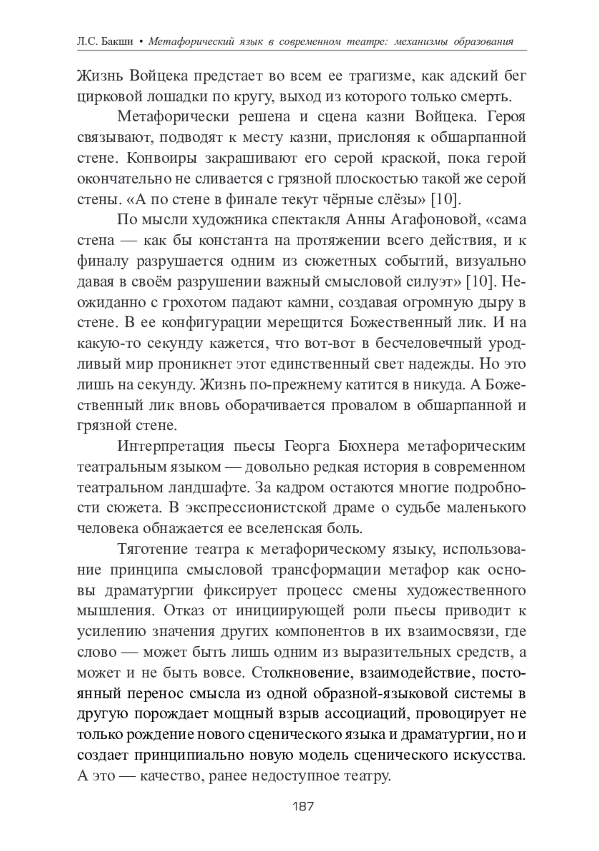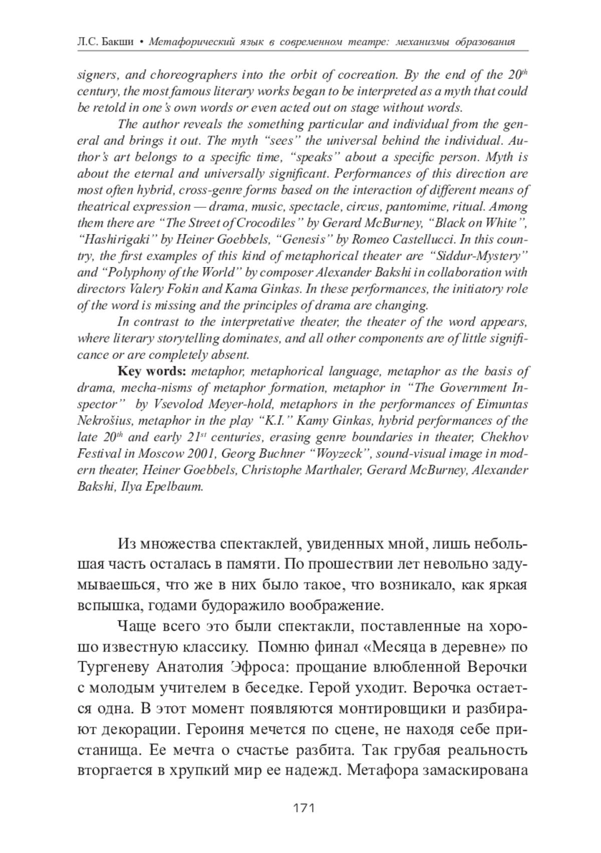 2. Бакши Л. В поисках нового музыкального театра // Теория и история искусства. Вып. 1/2 / гл. ред. А.П. Лободанов. М.: БОС; МГУ им. М.В. Ломоносова, 2017. С. 220-234.