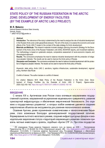 Материалы и методы. Материалами исследования послужили документы стратегического планирования (Стратегия развития Арктической зоны РФ до 2035 г.), отчеты компании «НОВАТЭК» и статистика инвестиций. Методология включает системный анализ, сравнительную оценку воздействия на социально-экономическую среду и хронологический подход.