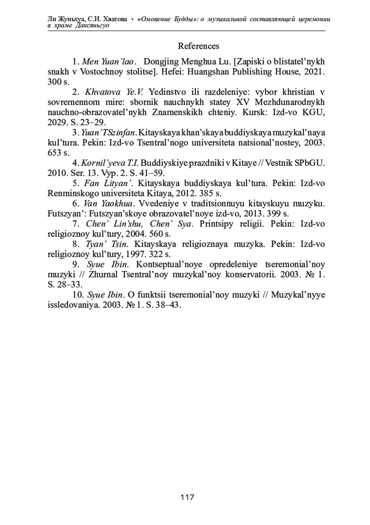 9. Сюэ Ибин. Концептуальное определение церемониальной музыки // Журнал Центральной музыкальной консерватории. 2003. № 1. С. 28-33.