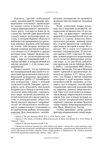 Можно сказать, что исторически постамериканский мир является логическим продолжением идеи нелиберальной демократии, предложенной автором* (2003 г.). Нелиберальная демократия – идея, с которой тогда выступил Ф. Закария, преследовала цель объяснить мыслящей Америке (да и Западу в целом) политическое многообразие современного мира, наличие различных моделей политического представительства и модернизации общества.