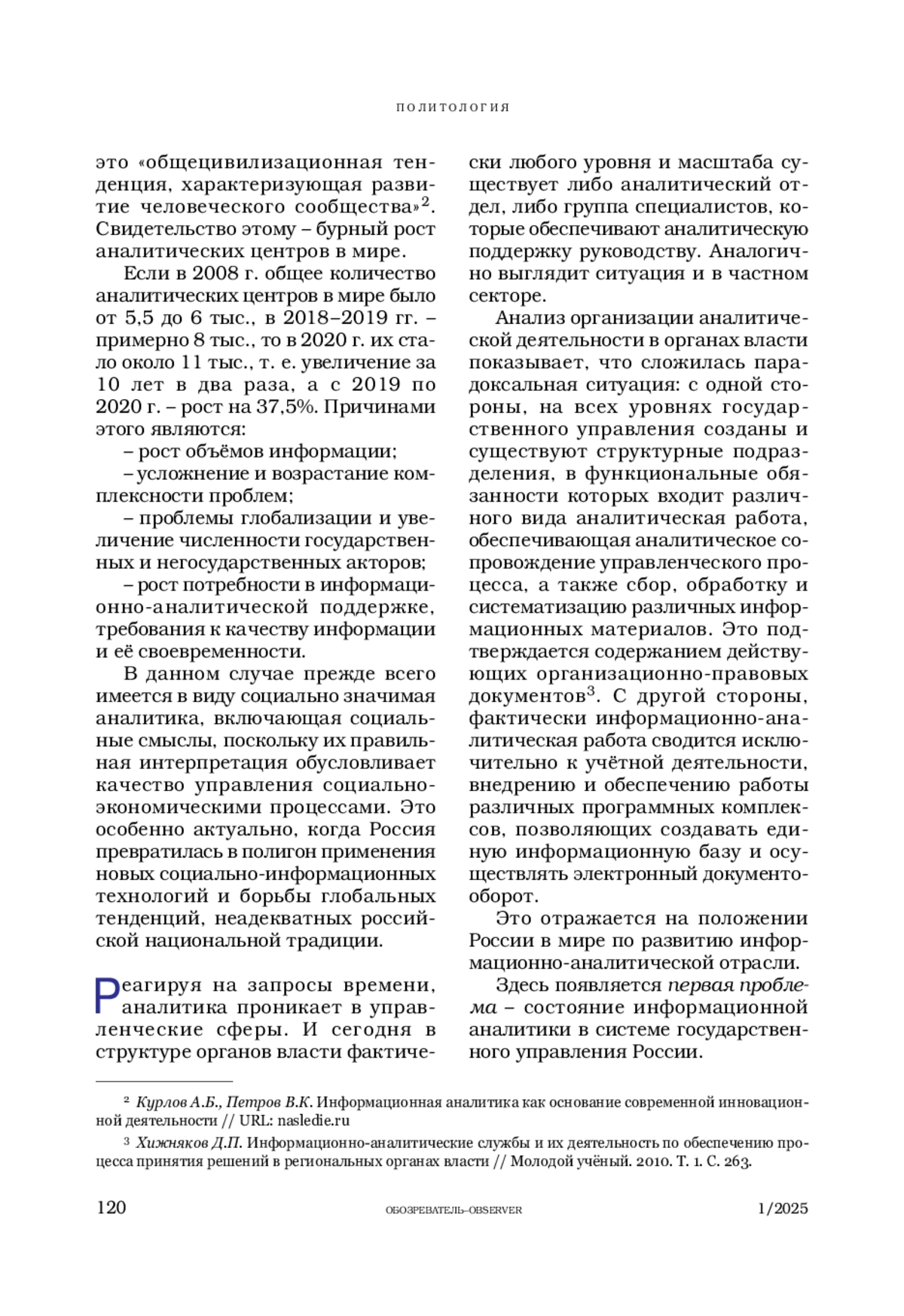 3. Курлов А.Б., Петров В.К. Информационная аналитика как основание современной инновационной деятельности // URL: nasledie.ru