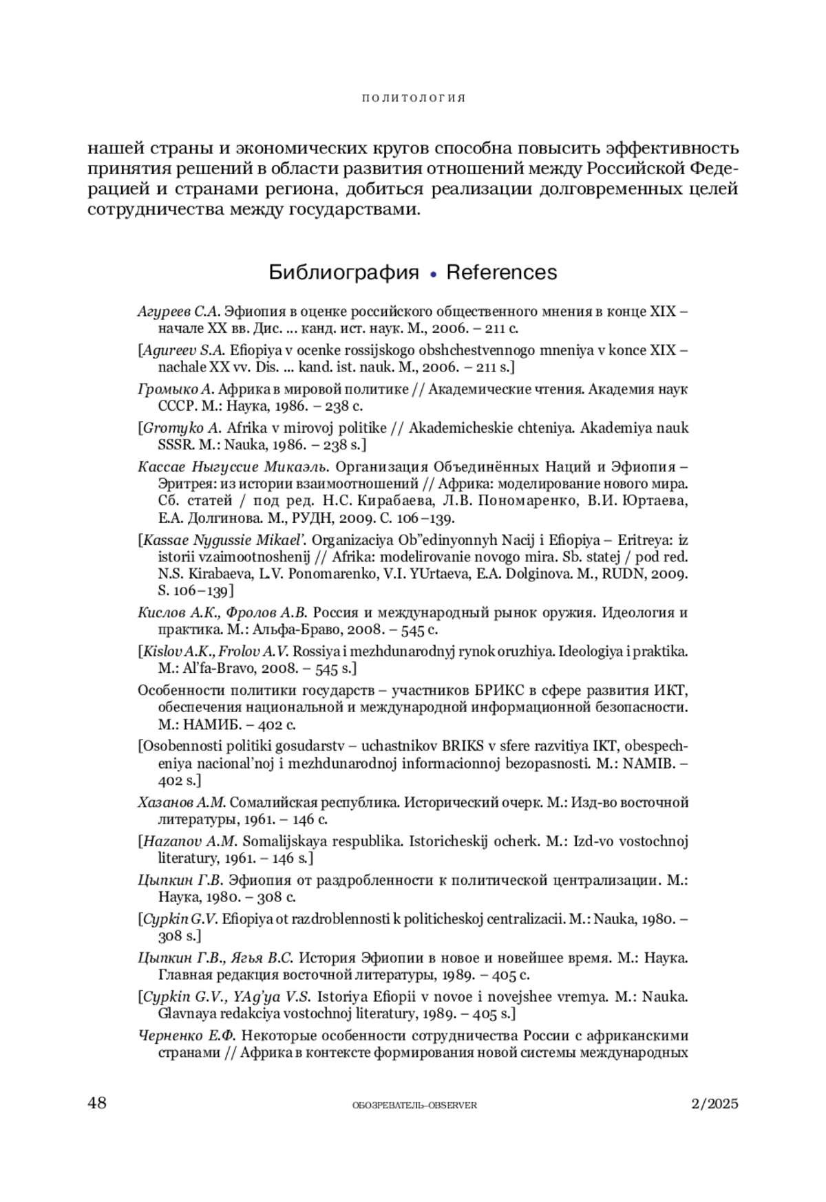 1. Агуреев С.А. Эфиопия в оценке российского общественного мнения в конце XIX - начале XX вв. Дис. ... канд. ист. наук. М., 2006. - 211 с.