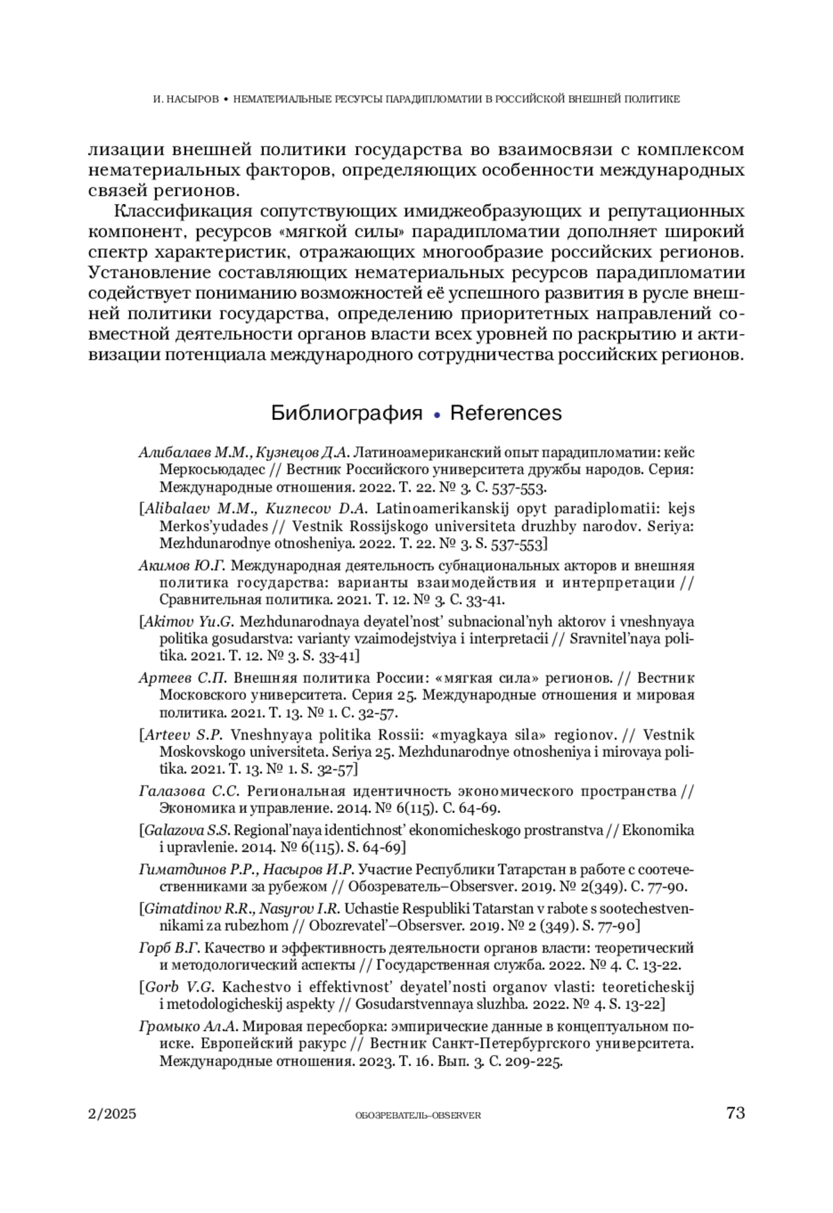5. Гиматдинов Р.Р., Насыров И.Р. Участие Республики Татарстан в работе с соотечественниками за рубежом // Обозреватель-Obsersver. 2019. № 2(349). С. 77-90.