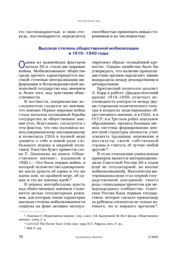 В статье анализируется эволюция концепции «власти привлекательности» в государственной политике на протяжении ХХ в., прослеживается её взаимосвязь с развитием массовой коммуникации, расширением гражданского участия и идеологическими противостояниями. Особое внимание уделяется американскому опыту в сфере публичной дипломатии, а также трансформации пропагандистских стратегий от прямого идеологического воздействия к более тонким формам «мягкой силы.