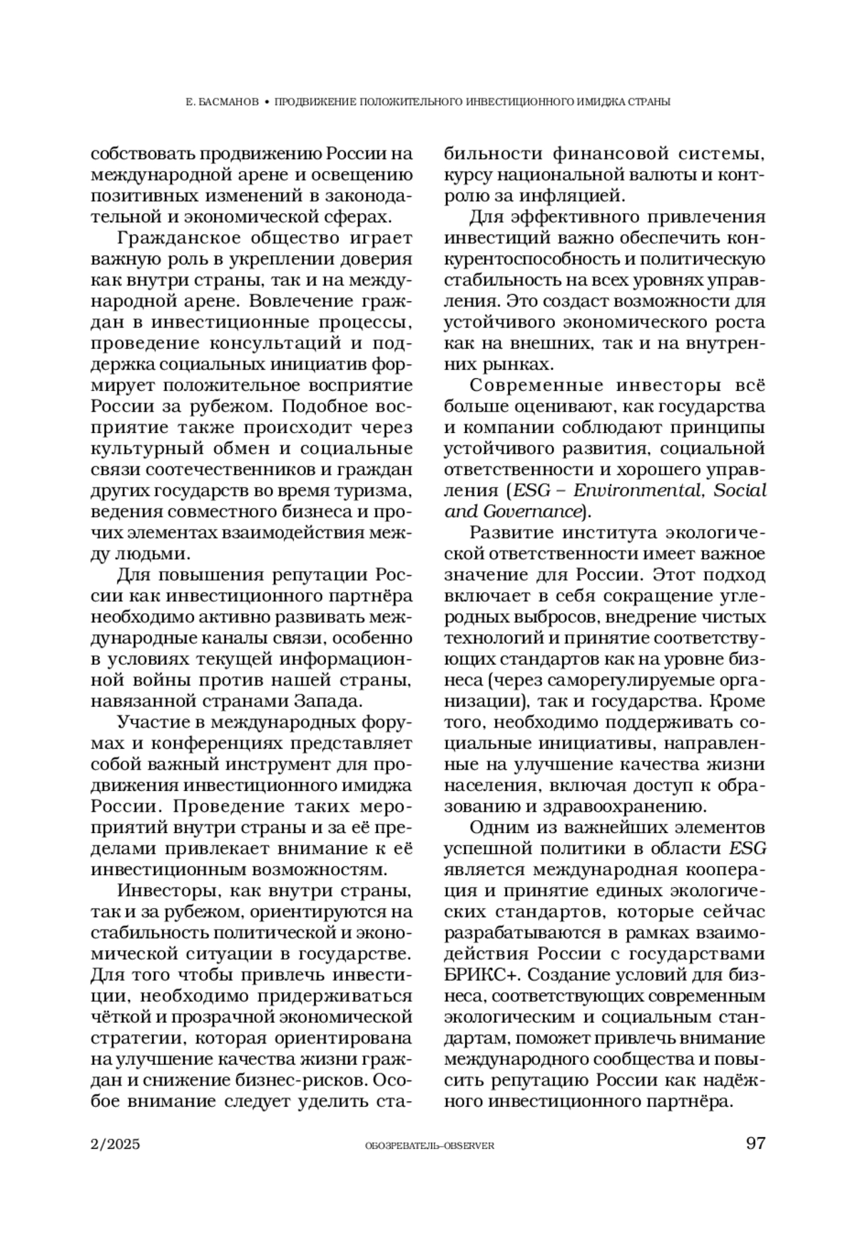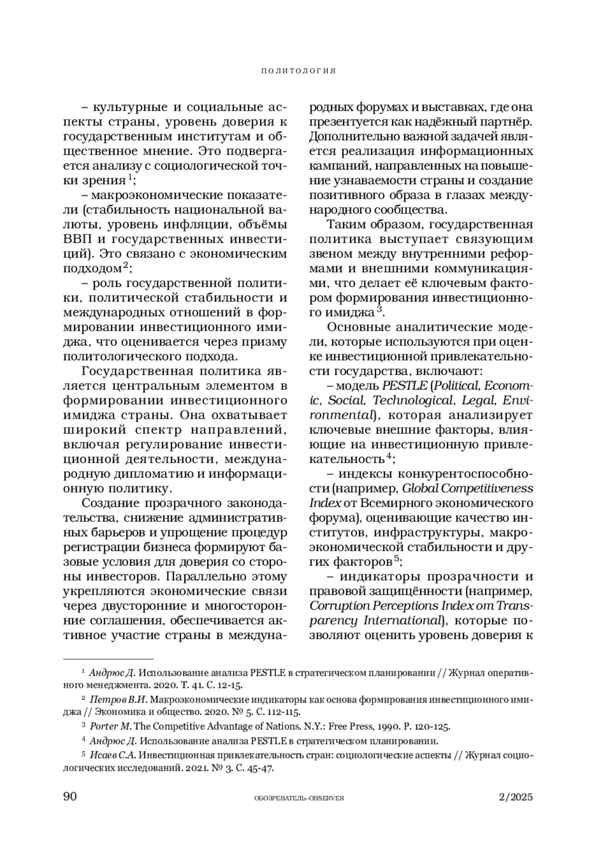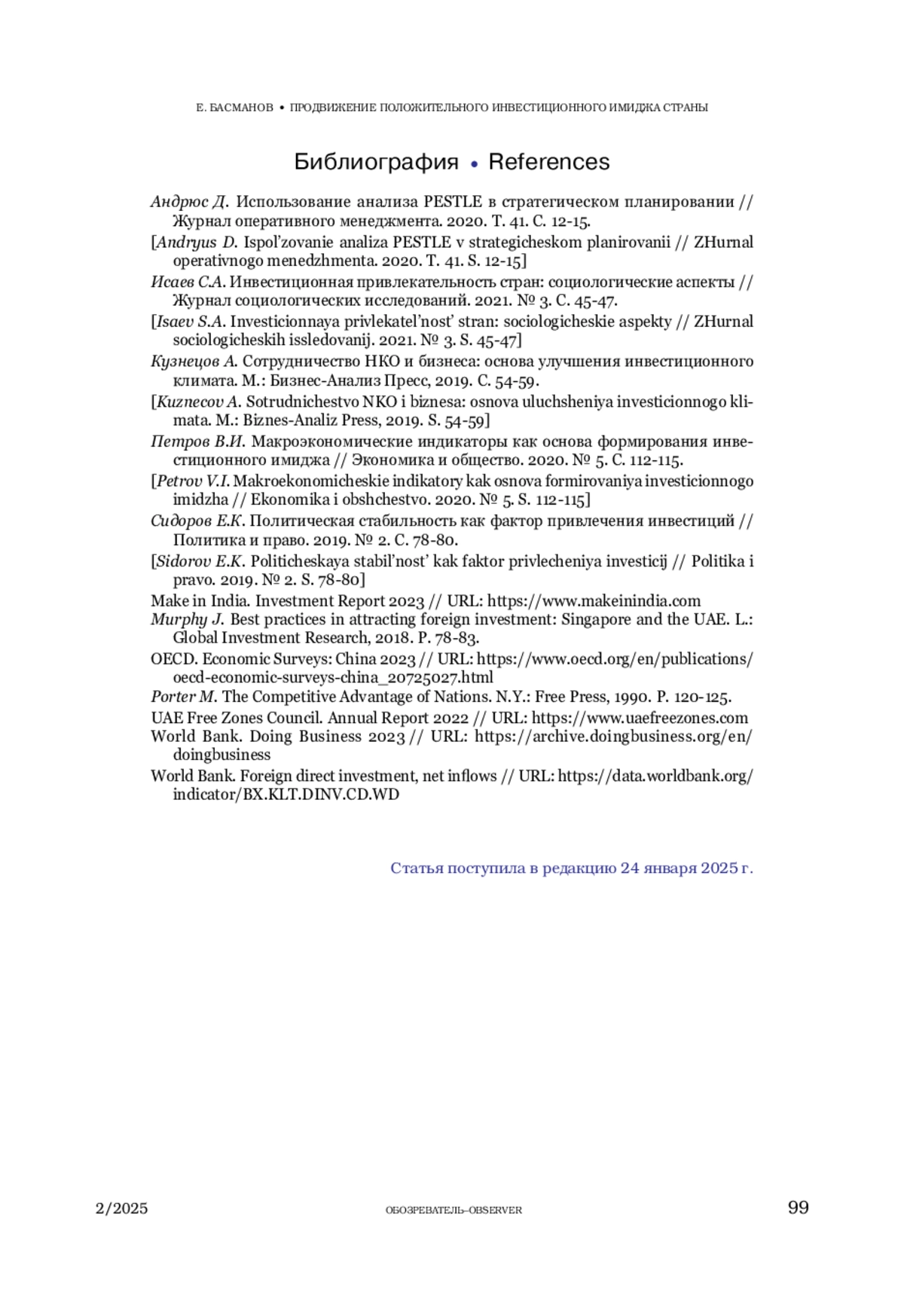 2. Исаев С.А. Инвестиционная привлекательность стран: социологические аспекты // Журнал социологических исследований. 2021. № 3. С. 45-47.