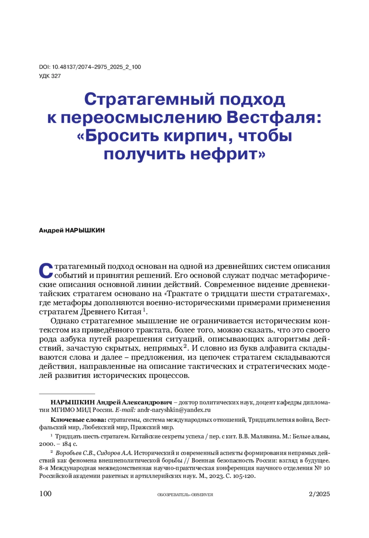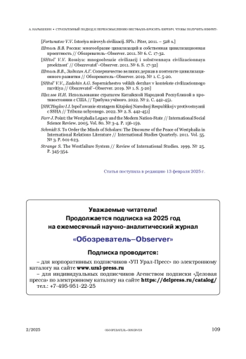 17. Штоль В.В., Задохин А.Г. Соперничество великих держав в контексте цивилизационного развития // Обозреватель-Observer. 2019. № 1. С. 5-20.