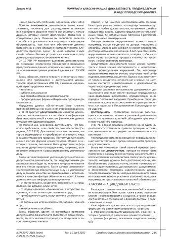 13. Рогава И.Г., Яловая Д.В., Допустимость как свойство доказательств в уголовном судопроизводстве //Международный журнал гуманитарных и естественных наук. - 2019. - №2-2. - С. 173- 175. EDN: YZEDOP