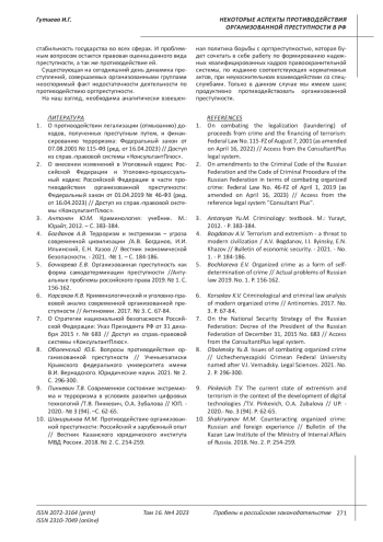 8. Оболенский Ю.Б. Вопросы противодействия организованной преступности // Ученыезаписки Крымского федерального университета имени В.И. Вернадского. Юридические науки. 2021. № 2. С. 296-300.