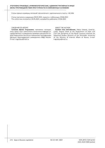 Информационное воздействие в настоящее время позволяет оперативно организовывать общественную реакцию на происходящие государственные и социальные процессы. Указанная тенденция наглядно проявляется в рамках антироссийской информационно-пропагандисткой деятельности, которая весьма активно осуществляется в настоящее время в условиях обострения геополитического конфликта между Россией и Украиной и проведением специальной военной операции. В данном контексте справедливым видится совершенствование отраслевого законодательства в части закрепления ответственности не только за распространение заведомо ложных сведений об использовании Вооруженных Сил РФ, но и о функционировании органов государственной власти РФ на территории зарубежных государств. Учитывая значимость деятельности вышеназванных государственных органов по обеспечению и охране прав и законных интересов граждан РФ за рубежом, подобное противоправное поведение представляет существенную общественную опасность. Целью представленного исследования выступает анализ современных механизмов борьбы с распространением недостоверной информации о работе государственных органов России за рубежом. Автор приходит к выводу о том, что борьба с анализируемыми правонарушениями и преступлениями предполагает комплексное воздействие как на противоправную практику, так и на обстоятельства, ее порождающие. Акцентируется внимание на необходимости переориентации профилактико-предупредительной деятельности на интернет-пространство, в том числе всесторонне использование потенциала социальных сетей и видеохостингов. Отмечается важнейшее практическое значение повышения уровня информационной грамотности российского населения в части тщательного выбора информационных источников и формирования должной реакции при выявлении заведомо ложных сведений.