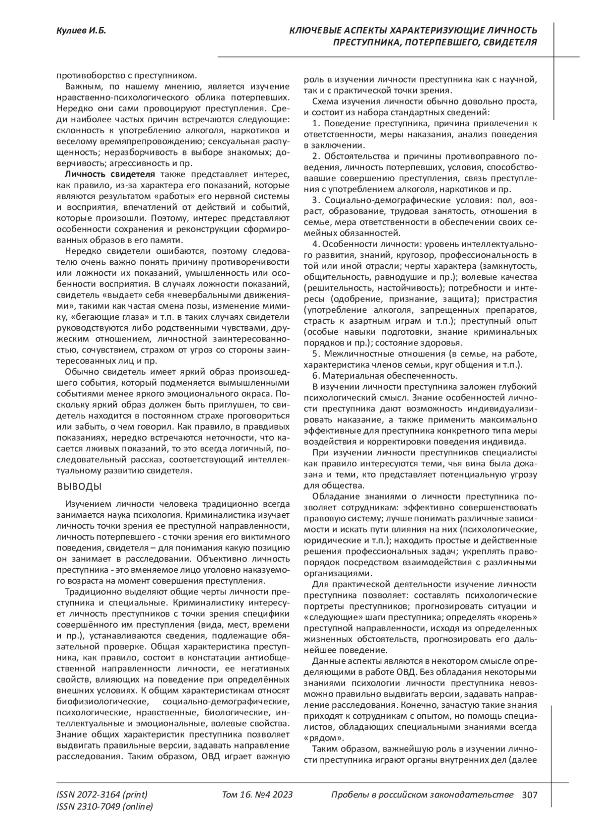 Akhyadov E.S. The identity of the offender: the concept and structure // Young scientist. 2016. - No. 9 (113). - P. 796-797. EDN: VWEPIJ